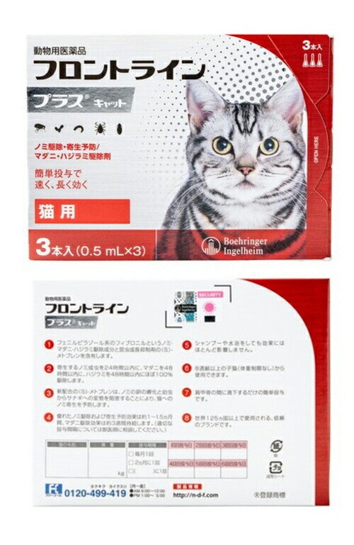 【動物用医薬品】 フロントライン 猫用 3本入 ノミ 蚤 ダニ ハジラミ 駆除剤 駆除液 動物用 ペット用 医薬品 フロントラインプラスキャット【送料無料】