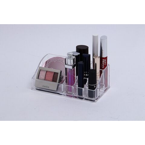 クリアタイプのシンプルなコスメ収納です。幅広く様々な場所で使用できる便利なアイテムです。
