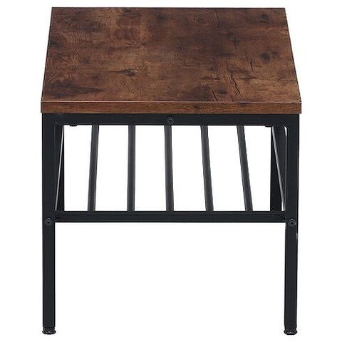 スチールとウッドの組み合わせがオシャレなアイテム。コンパクトなサイズで一人暮らしの方にもオススメです。天板下には棚が付いており、雑誌などのちょっとしたものの収納として使用できます。脚部にはアジャスターが付いており、気になるがたつきを防ぎます。