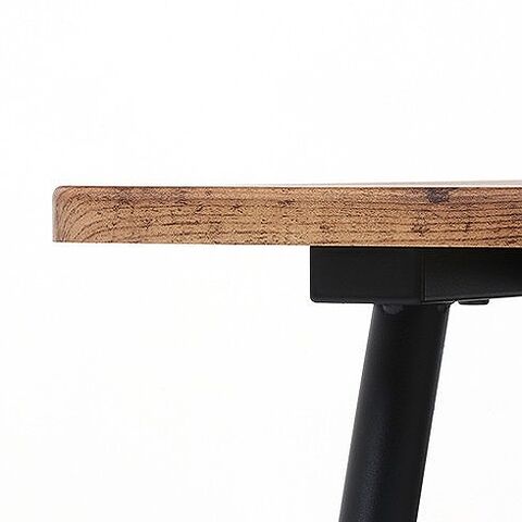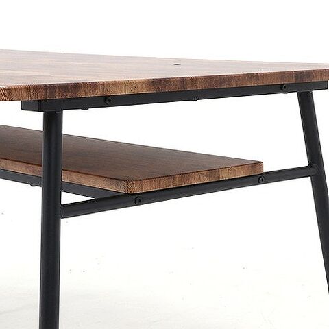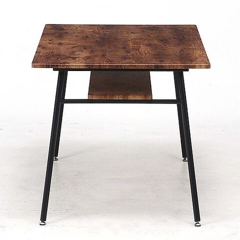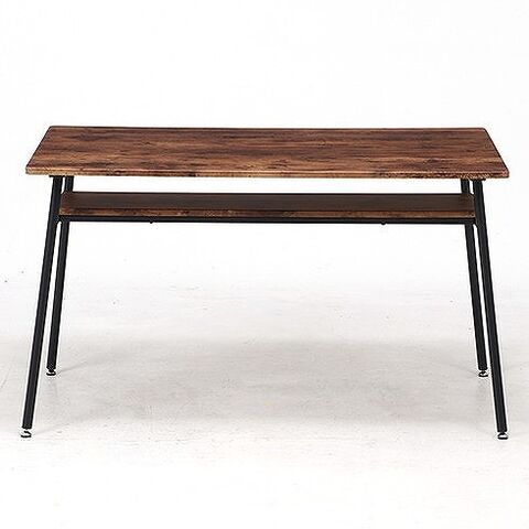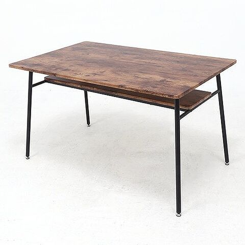 木目調の天板とスチール脚の組み合わせがオシャレなテーブルです。天板下の棚には雑誌やリモコンなどを置くことができるので机上を広く使用することができます。天板は角に丸みをもたせた優しいデザインです。脚はアジャスター付きなので気になるガタツキを調節できます。