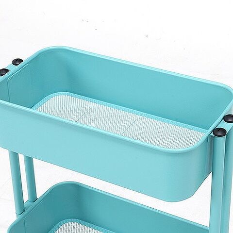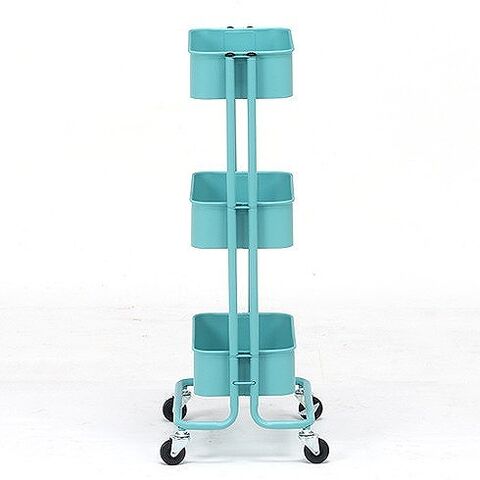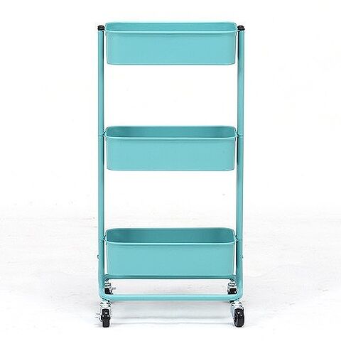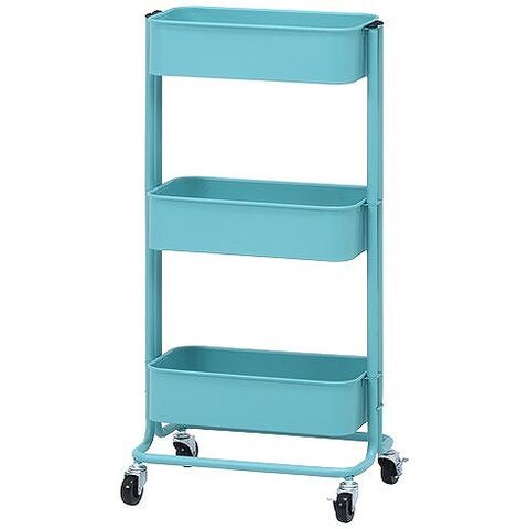 キッチンワゴン バスケット3段 スリム W390×D270×H785mm スチール所 おしゃれ ターコイズブルー【送料無料】