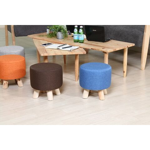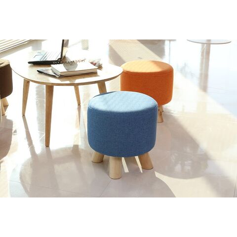 ミニファブリックスツール ブルー ラウンド 幅28×奥行28×高さ28cm 綿 ウレタンフォーム 合板 天然木【送料無料】