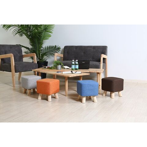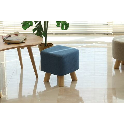 ミニファブリックスツール ブルー スクエア 幅26.5×奥行26.5×高さ27cm 綿 ウレタンフォーム 合板 天然木【送料無料】
