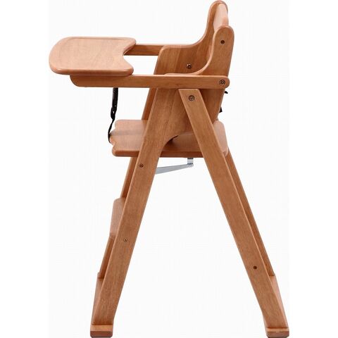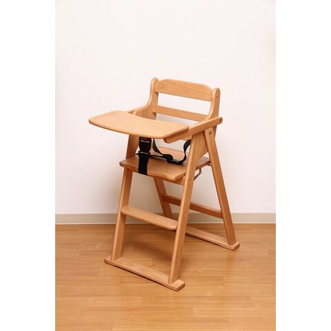 ハイタイプのベビーチェアです。木のぬくもりを感じる優しいデザインです。ベルト付きでお子様の滑り落ちを防止します。テーブルが付いており食事やお絵かきなどを楽しむことができます。折りたたみ式で使用時以外は省スペースに収納可能です。
