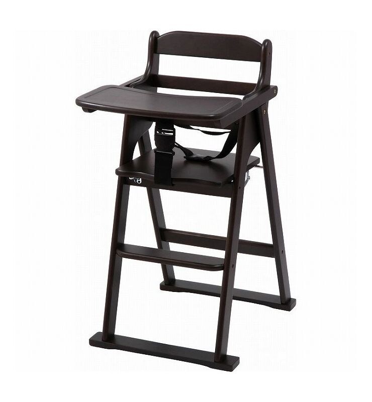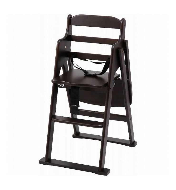 木製 折リ畳み ベビーチェアー ブラウン 幅43cm 奥行63cm 高さ83cm (座面高さ:50.5cm)【送料無料】