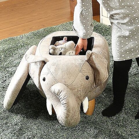 アニマルスツール収納付き W700×D340×H360mm 合板 天然木 ポリエステル おしゃれ 収納 ゾウ【送料無料】