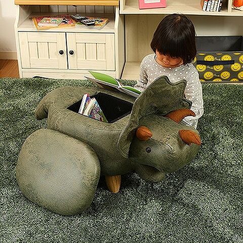 アニマルスツール収納付き W960×D340×H360mm 合板 天然木 ポリエステル おしゃれ 収納 ダイナソー【送料無料】