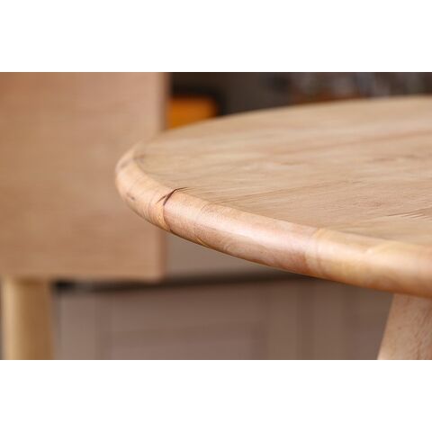 天然素材を活かしたラウンドテーブルです。全体的に丸みを帯びていて優しい印象を与えてくれます。木目や節など天然素材ならではの表情が楽しめます。