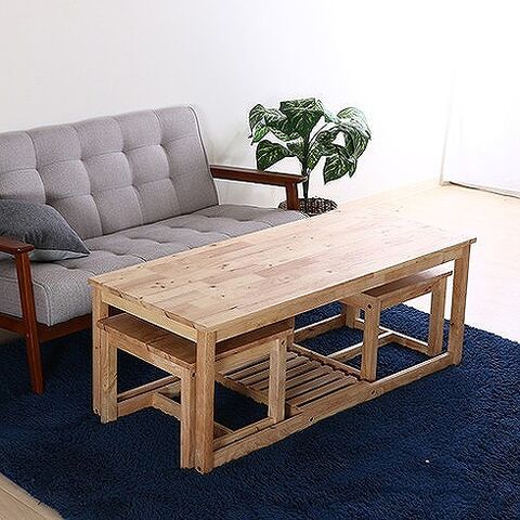 Natural Signature ネストテーブル W1200×D500×H450mm 天然木(ラバーウッド) おしゃれ【送料無料】