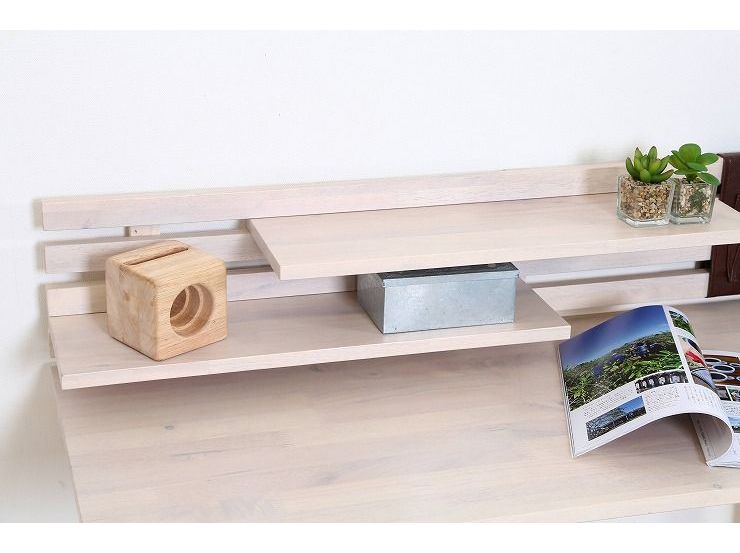 デスクセット ホワイトウォッシュ 幅120cm 奥行47.5cm 高さ74~94cm【送料無料】