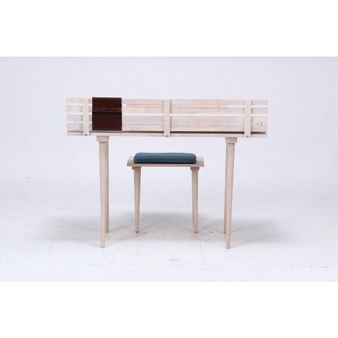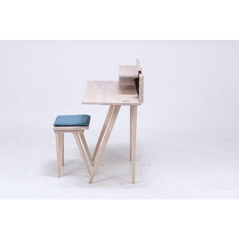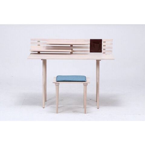 長時間のデスクワークにも優しいクッション付きのチェアもセットでついているおしゃれな木製デスクです。