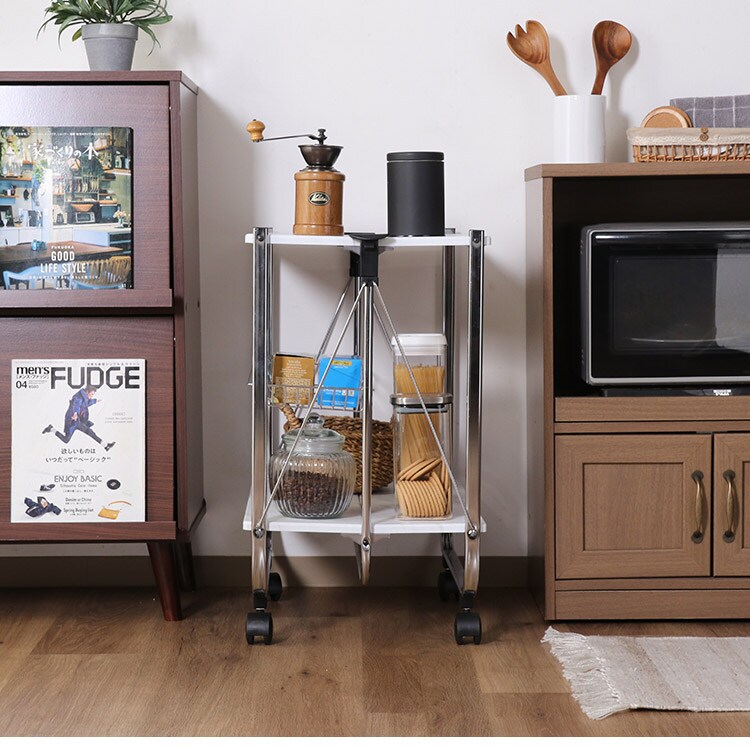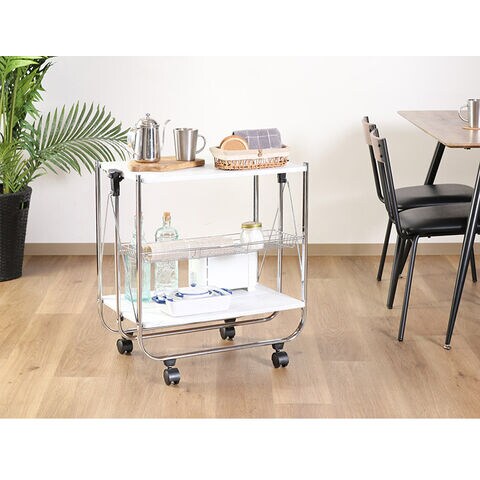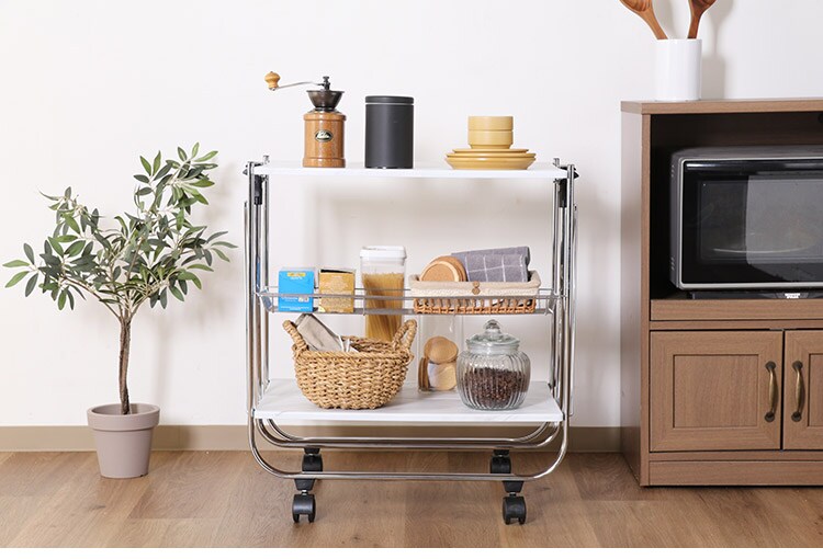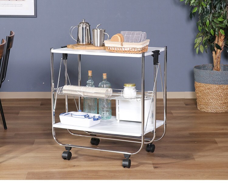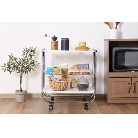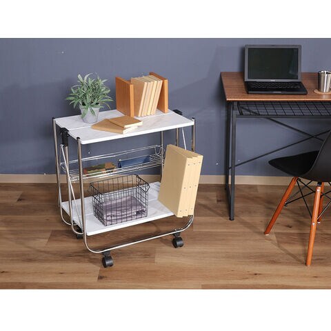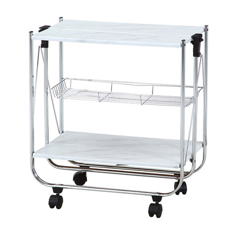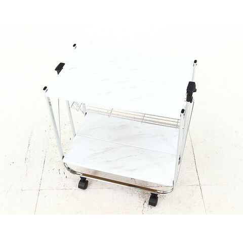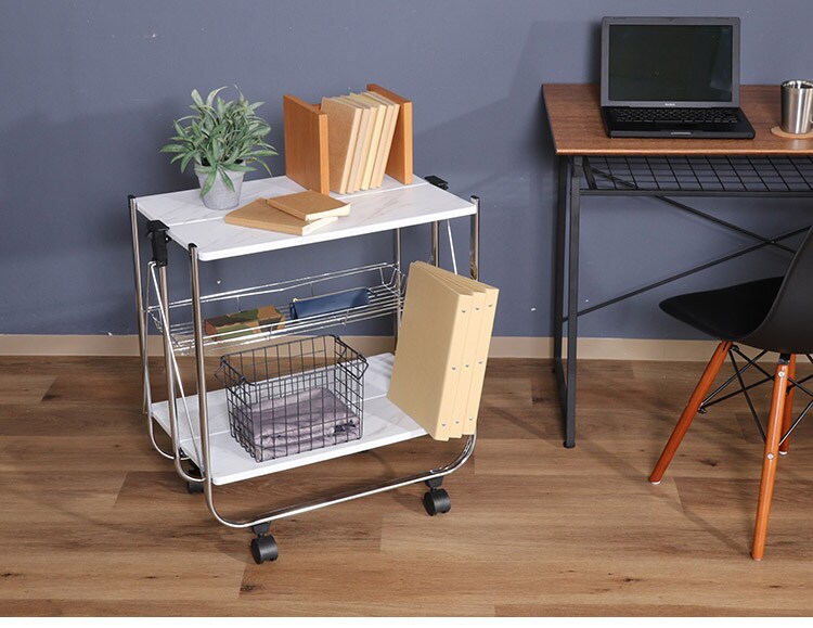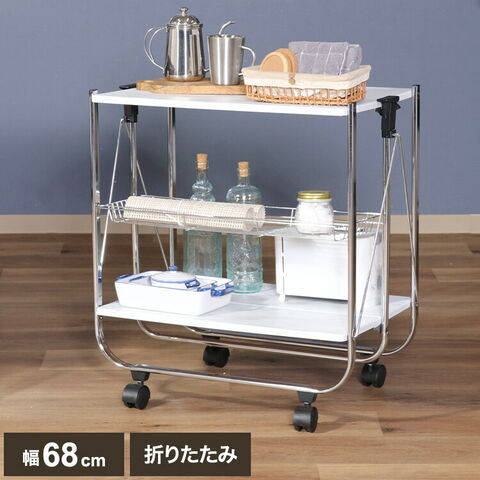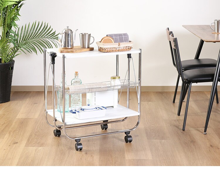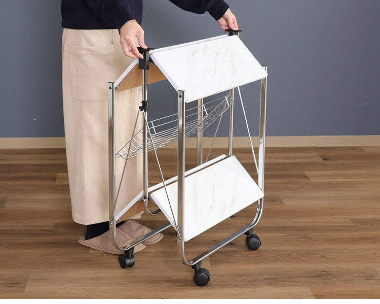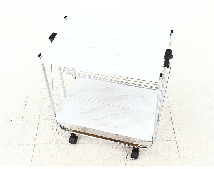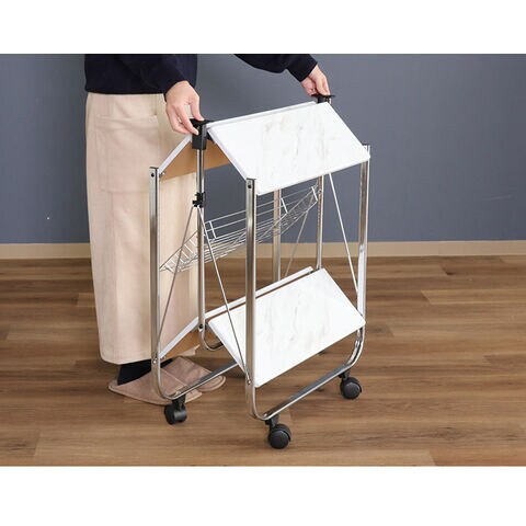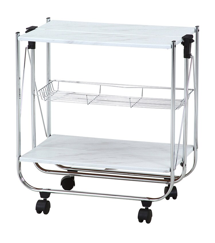 ワゴン 大理石柄 折りたたみ式 キッチンワゴン 幅68 奥行40 高さ70cm コンパクト キャスター付き 網棚 スタイリッシュ フォールディングワゴン キッチン収納 台車 マルチワゴン 折り畳み【送料無料】