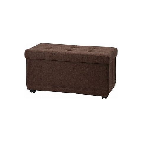 蓋を開けると中が収納スペースになっているスツールです。柔らかな印象を与えるファブリック生地を使用しております。使用時以外は折りたたんで収納することができます。底にはキャスターが付いており移動に便利です。