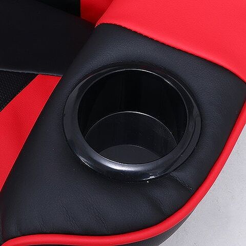 頭の先まで包み込むようなハイバックタイプを採用しております。レバー1つでリクライニング可能です。あると嬉しいドリンクホルダー付きです。