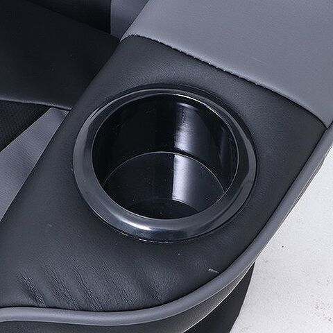 頭の先まで包み込むようなハイバックタイプを採用しております。レバー1つでリクライニング可能です。あると嬉しいドリンクホルダー付きです。
