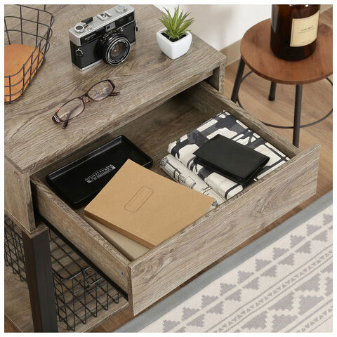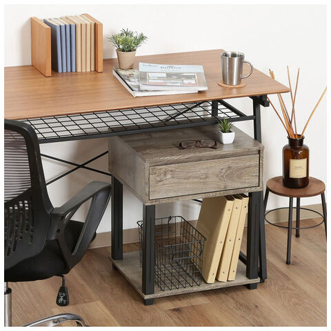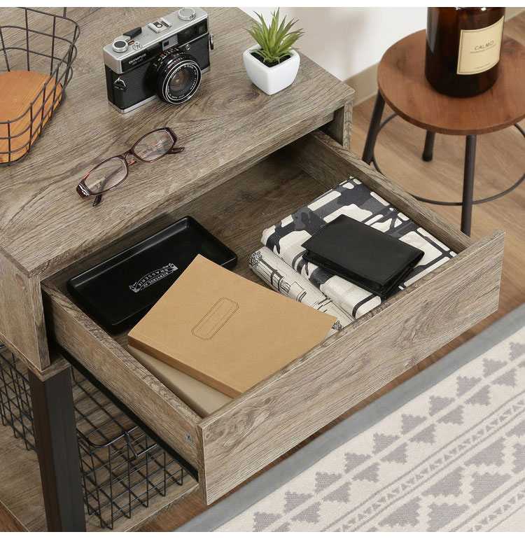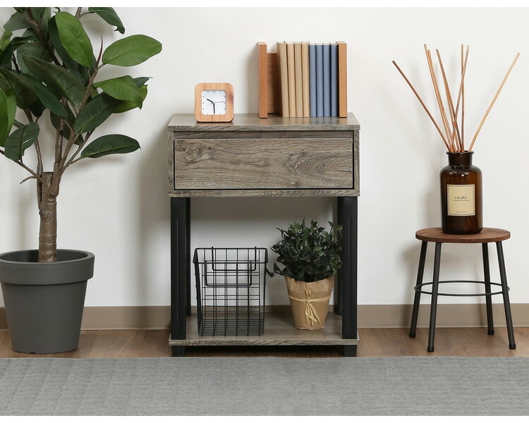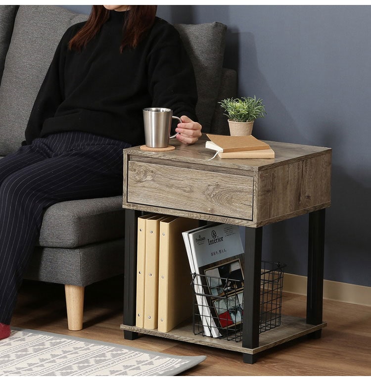 サイドテーブル 幅45cm 木目調 引き出し コンパクト 北欧 オープン収納 カフェテーブル おしゃれ アンティーク調 ベッド横 一人暮らし フリーラック 在宅 コーヒーテーブル【送料無料】