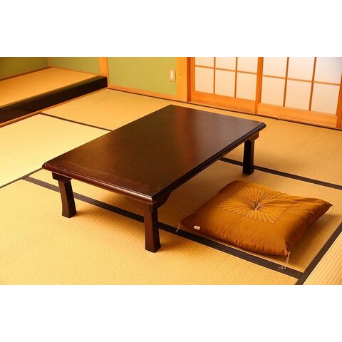 折脚和風座卓 W1200×D750×H340mm 天然木化粧繊維板(オーク材) 天然木(ラバー材) おしゃれ 紫檀色【送料無料】