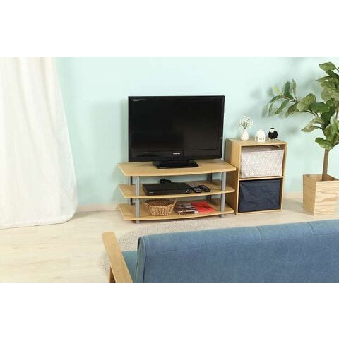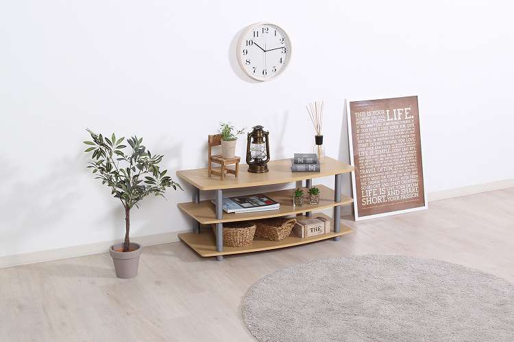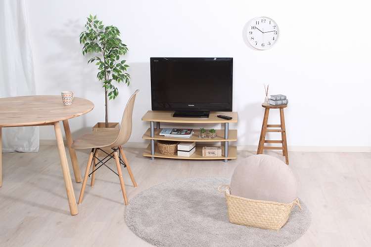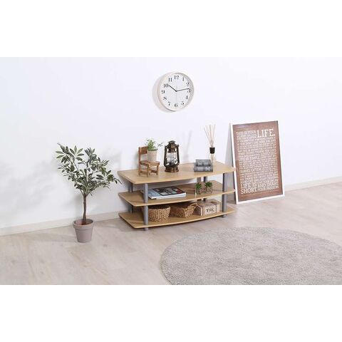 見た目も配線もスッキリ!ロータイプのテレビ台空間にゆとりを生むロータイプのテレビ台でお部屋がスッキリ見えます。木目調の棚板にフレームがアクセントとなるデザインです。DVDレコーダーやゲーム機器などのAV機器が置けるデッキ収納スペース付き。オープンタイプなので、リモコン操作やディスクの出し入れもラクラク。耐荷重20kgで32型テレビまで対応しています。木目調の化粧板のため、どんなお部屋にも馴染みます。高さ40.5cmの低めなデザインで、お部屋を広く見せます。一人暮らしの方やワンルームの方にもオススメ。デッキ収納スペースは裏もオープンなので、配線やコードを通すのもラクラク。