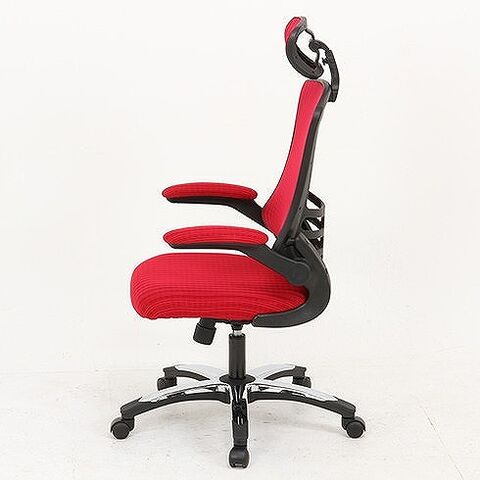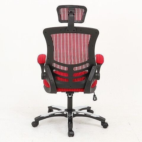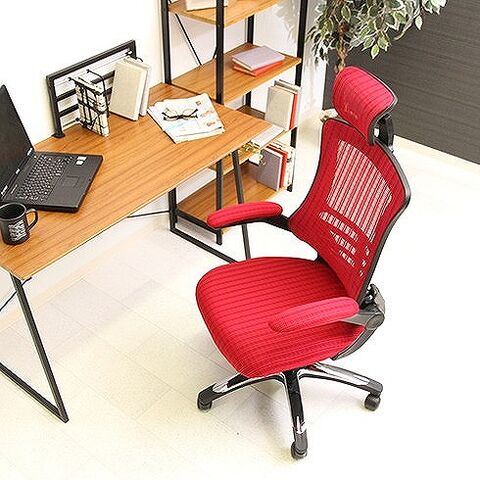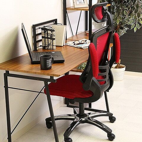 肘掛け跳ね上げ機能付きです。長時間の着席や、夏場でも蒸れにくいメッシュ素材を使用。背面の子支部には簡易収納が可能で書類や雑誌の収納ができます。ガス昇降機能付きで自分に合った高さや机に合わせた高さに調節できます。ロッキング機能も付いております。