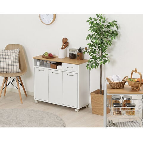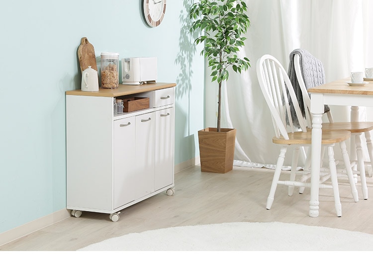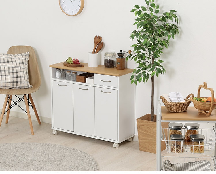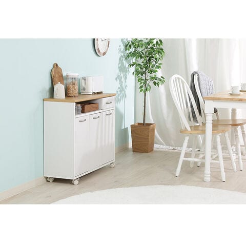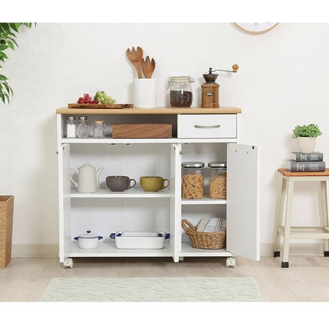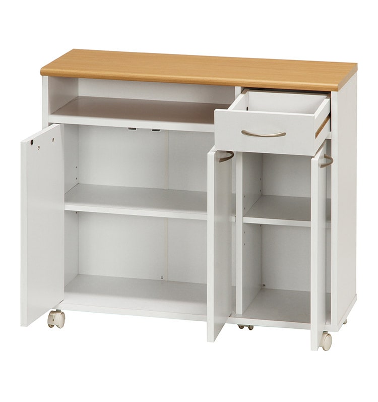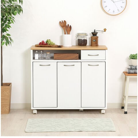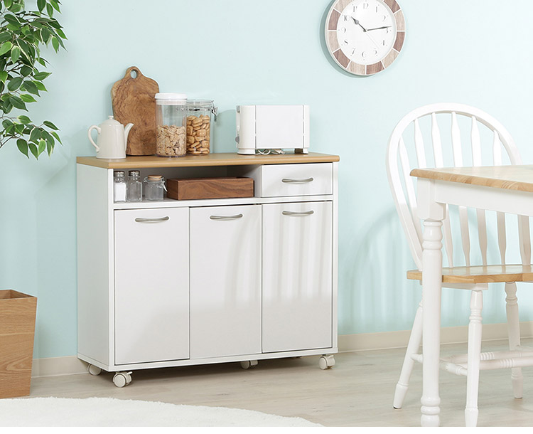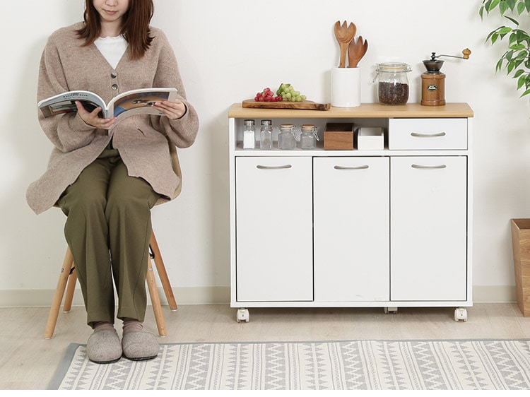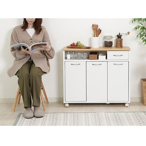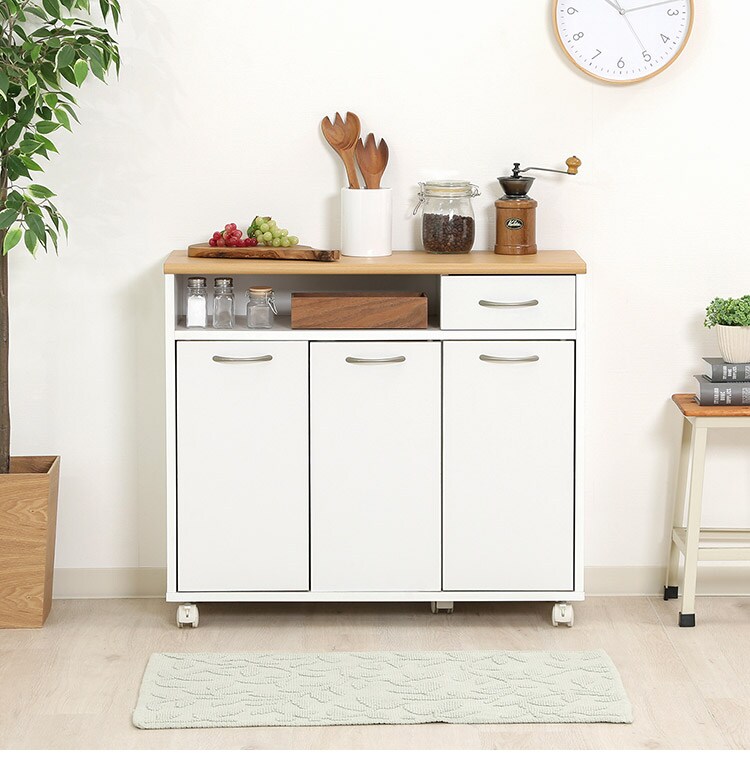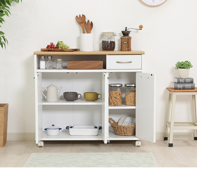 キッチンカウンター ミニ 幅80cm キャスター付き 引き出し オープン収納 可動棚 食器棚 キャビネット キッチンボード キッチン収納 カウンター収納 リビング ダイニング【送料無料】