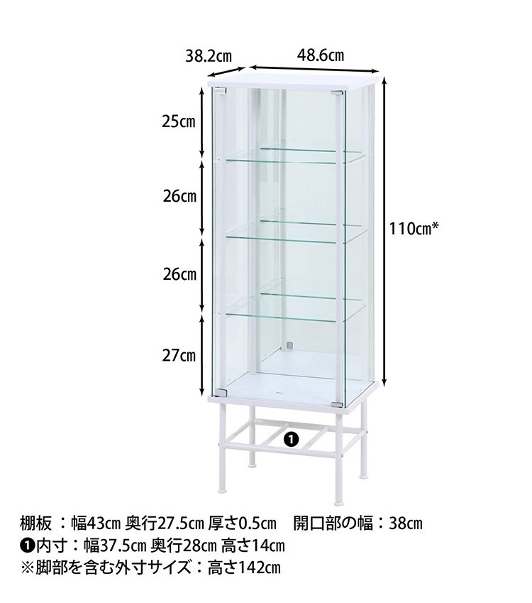 コレクションケース スタンドタイプ 4段 背面ミラー ディスプレイラック コレクションラック 飾り棚 収納棚 ガラス窓 リビング 書斎【送料無料】