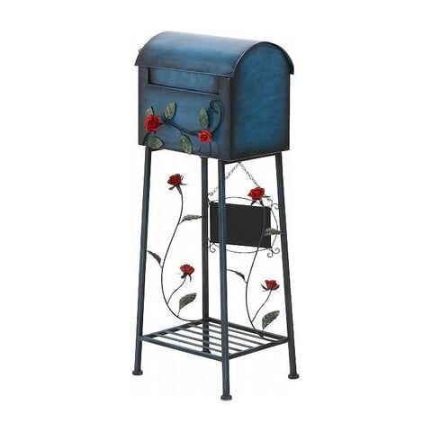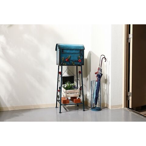 メールボックス ローズ横型 W405×D330×H1020mm スチール おしゃれ ブルー【送料無料】