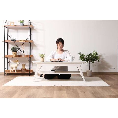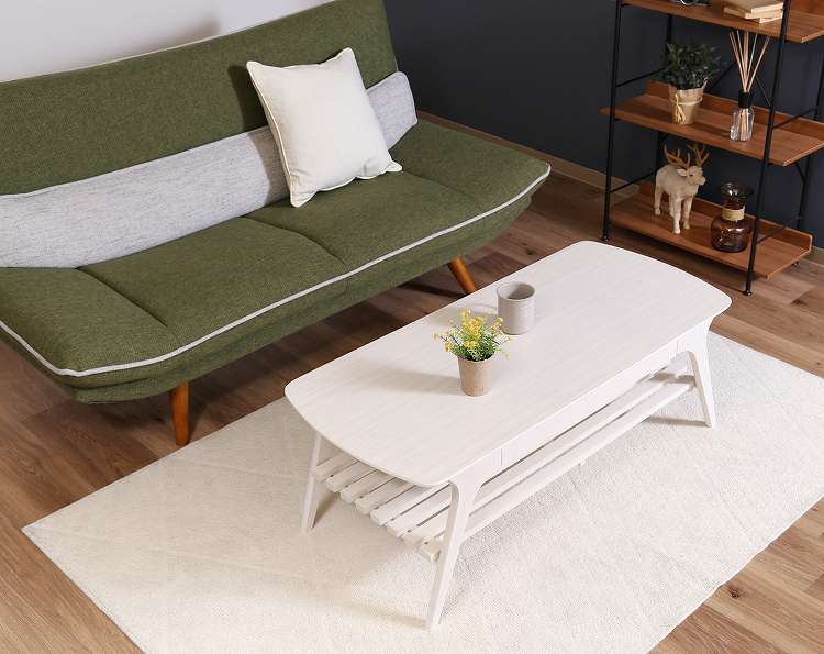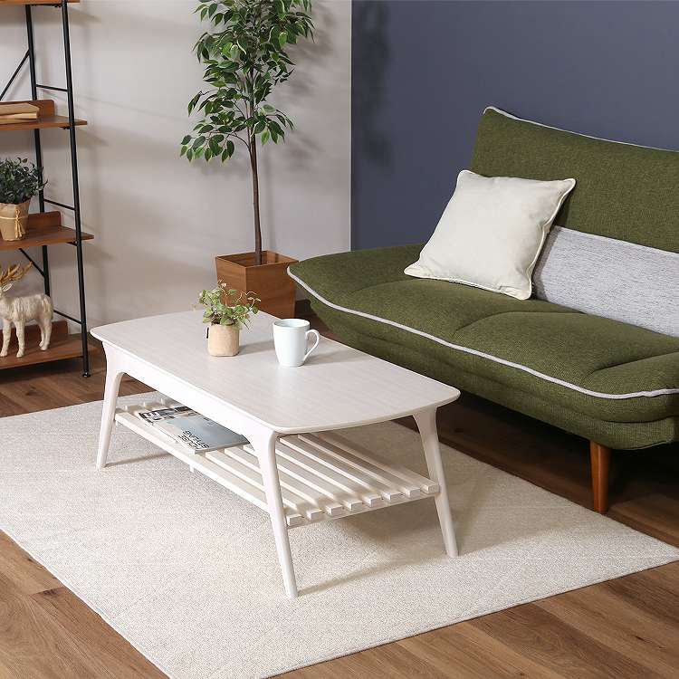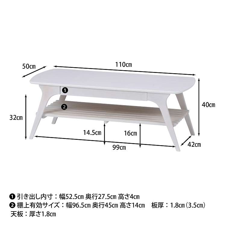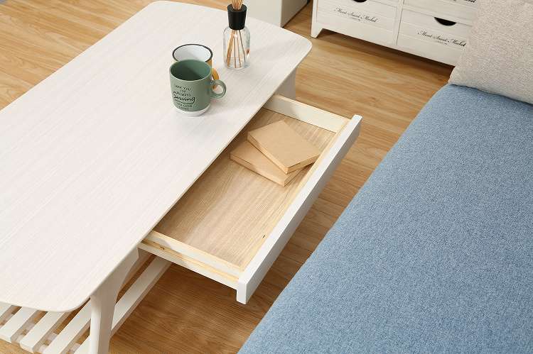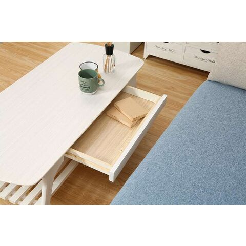 引出し付きセンターテーブル WH ローテーブル 引き出し 棚付き センターテーブル リビング ワンルーム【送料無料】