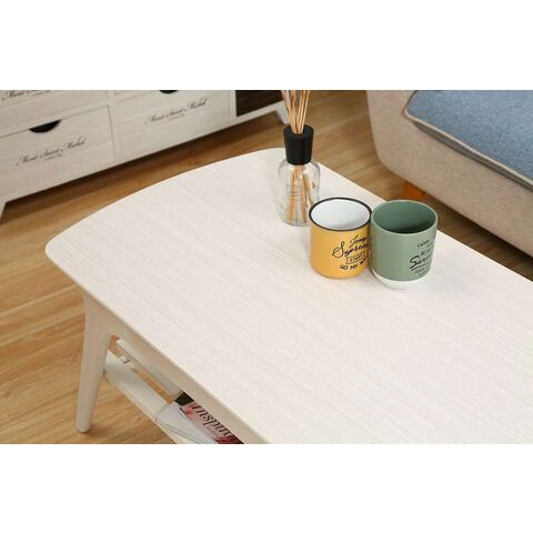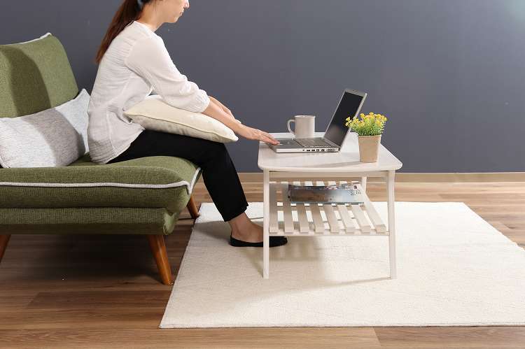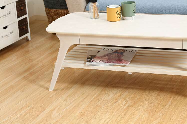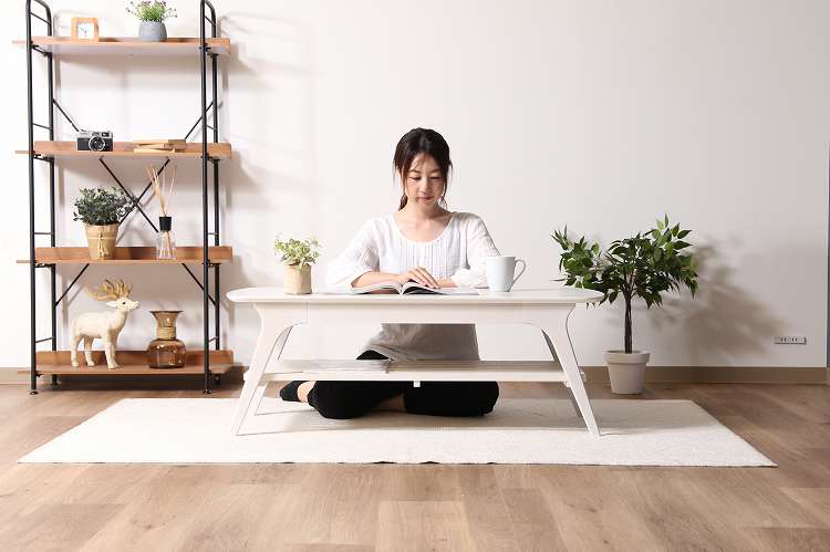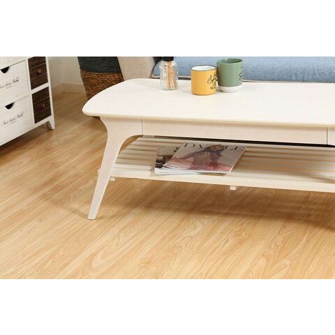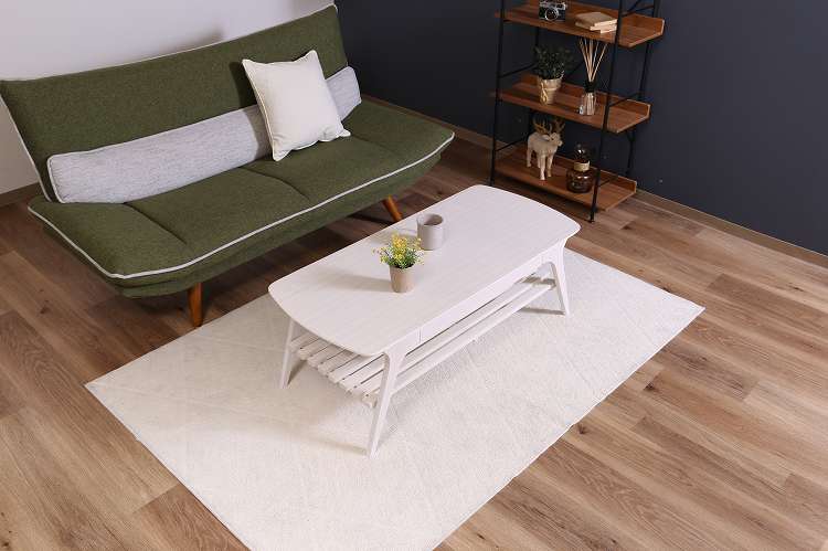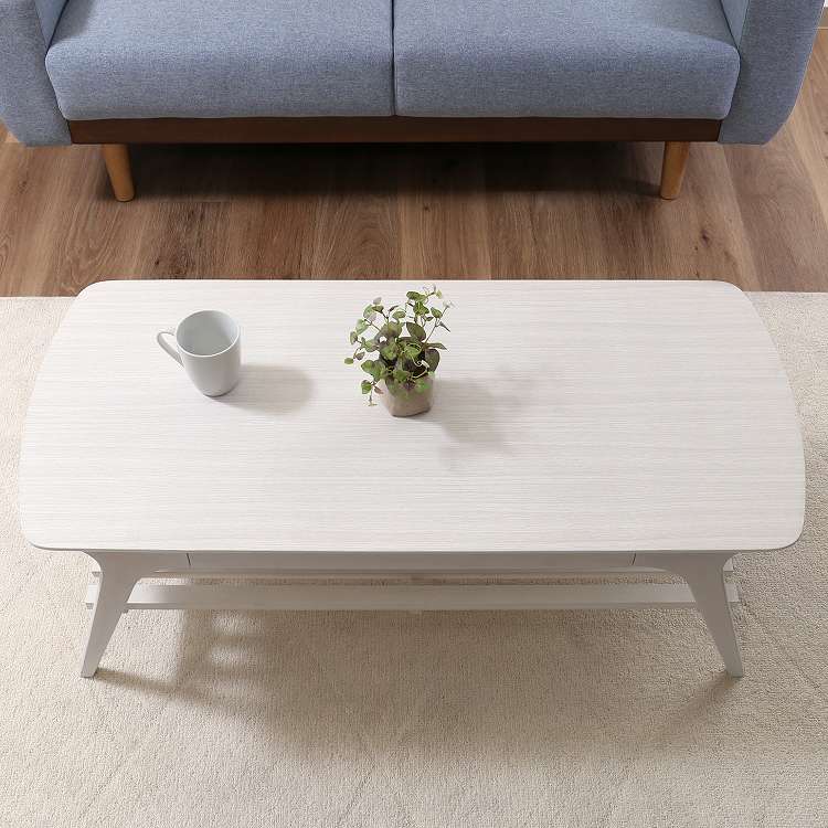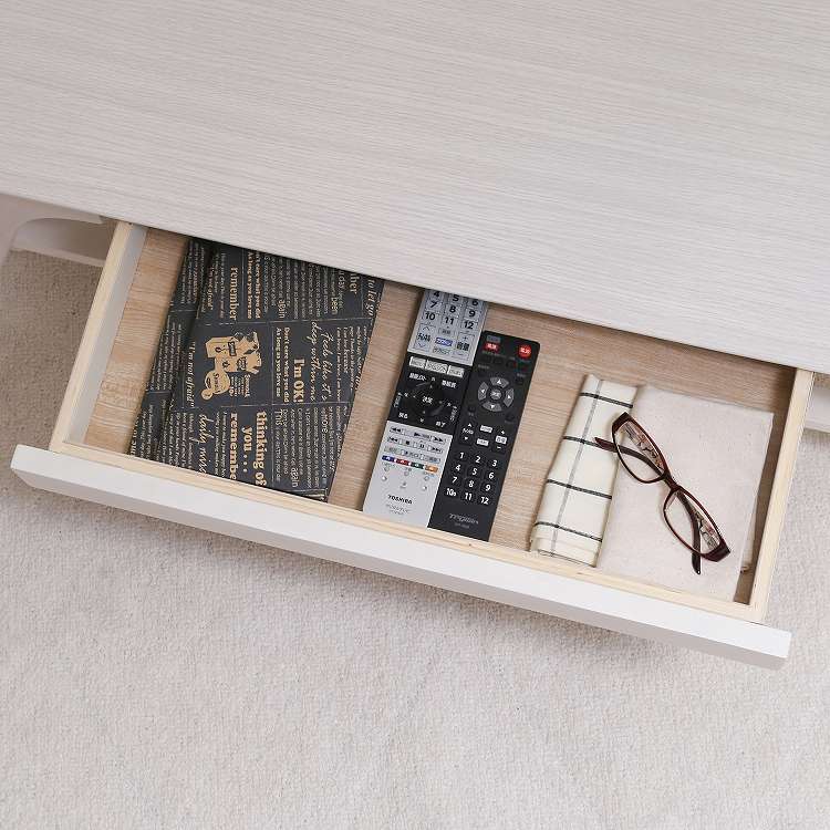 収納たっぷりの引き出し付きセンターテーブルシンプルですっきりとしたフォルムで、木目の温かみがお部屋に優しく馴染むデザインです。天板下には棚が付いており、高さは14cm。BOXティッシュや雑誌などを収納できます。幅52.5×奥行27.5×高さ4cmの引き出し付きで、毎日よく使う小物などの収納に便利です。幅110×奥行50cmの天板は2人でも十分使える大きさです。また、天板の角は丸みをつけており、安全性にも配慮しています。天板の表面には傷や汚れに強いUV塗装を施しているので、汚れてもサッと拭き取れます。棚板を外すと高さ32cmのスペースになるので、床に座ってゆっくりくつろげます。