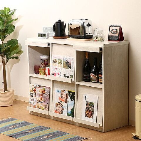 扉部分にお気に入りの雑誌などをディスプレイすることができます。扉の中は収納スペースとなっており、隠す収納として使用できます。ディスプレイしたままでも扉は開くことができます。