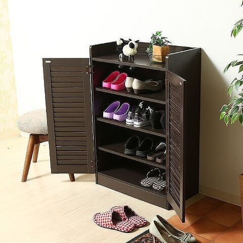 散らかりがちな玄関の靴もスッキリと片付き、いつでもキレイな玄関にしてくれます。扉は湿気やにおいがこもりにくいルーバー仕様となっております。棚板は高さ調節が可能なので収納物に合わせて位置を変えられます。