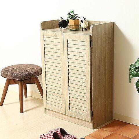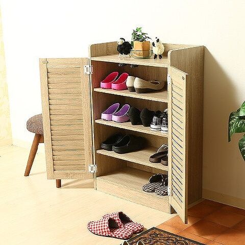 散らかりがちな玄関の靴もスッキリと片付き、いつでもキレイな玄関にしてくれます。扉は湿気やにおいがこもりにくいルーバー仕様となっております。棚板は高さ調節が可能なので収納物に合わせて位置を変えられます。
