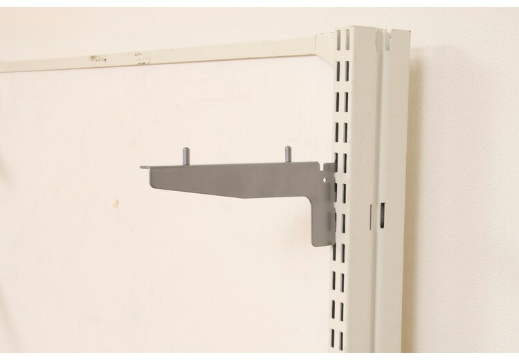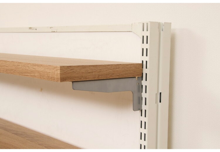 棚受けをはめる穴が2箇所あるため、お店の什器の幅に合わせて調節可能です。