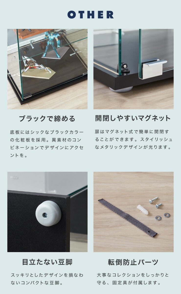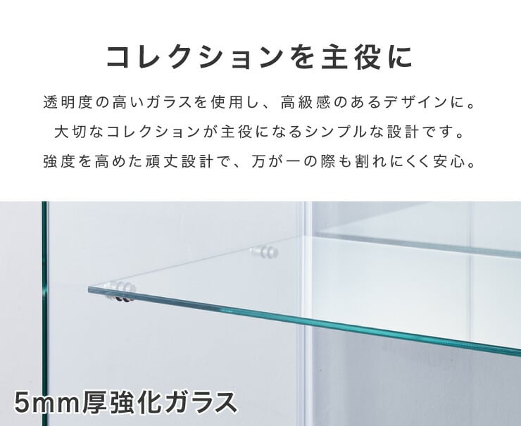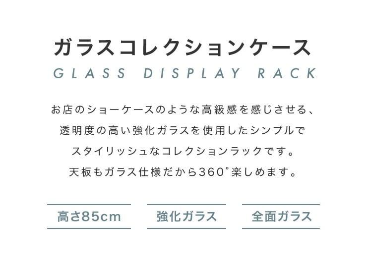 大切なコレクションをより美しく見せてくれる強化ガラスケースです。