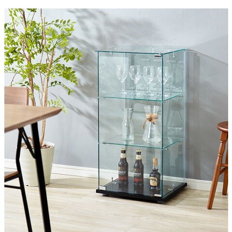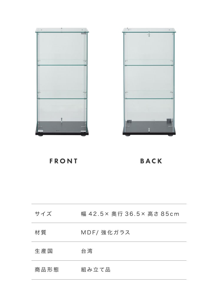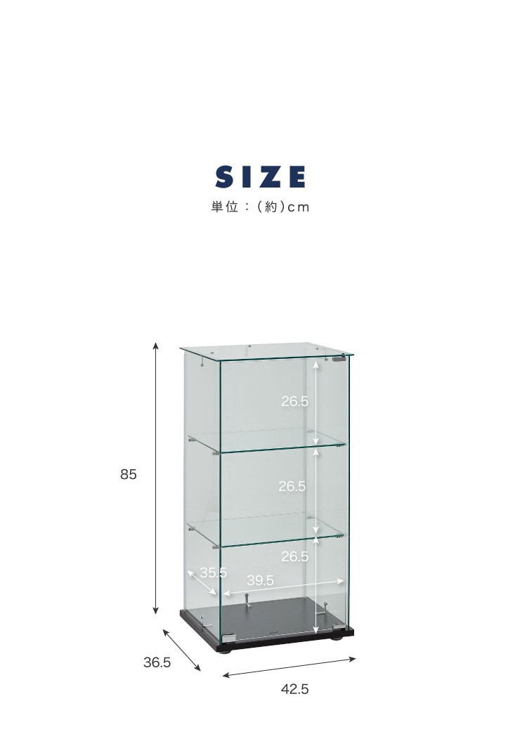 ガラスコレクションケース フィギュアケース 3段 クリア 全面ガラス 幅42.5cm 奥行36.5cm 高さ85cm 強化ガラス ブラック【送料無料】