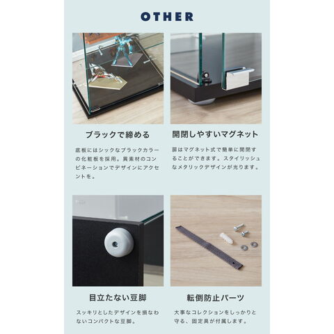 フィギュアやアクセサリーなどを埃から守り、いつも綺麗な状態で展示できます。