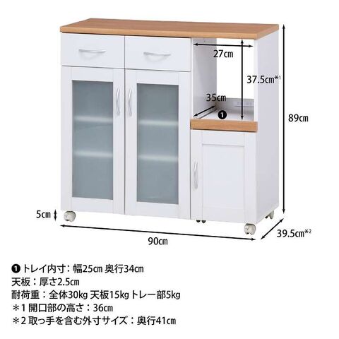 キッチンカウンター サージュ WH×NA 90幅(96819)【送料無料】