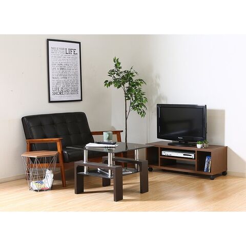 キャスター付きTV台 ミディアムブラウン 幅89×奥行32.9×高さ40.8cm プリント紙化粧繊維板【送料無料】