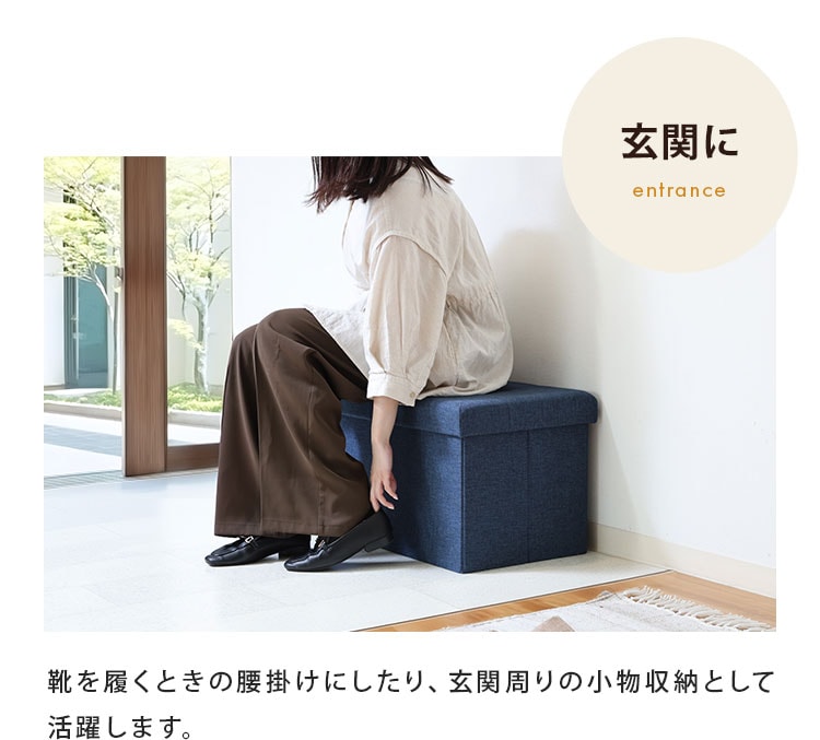 玄関に置けばちょっとした腰掛けや、来客時にスリッパをさっと出すのに便利です。