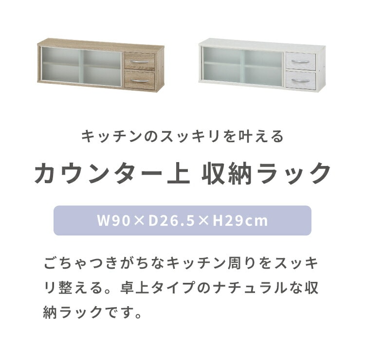 キッチン・ダイニング周りに便利な、カウンター上収納ラック(幅90cmタイプ)