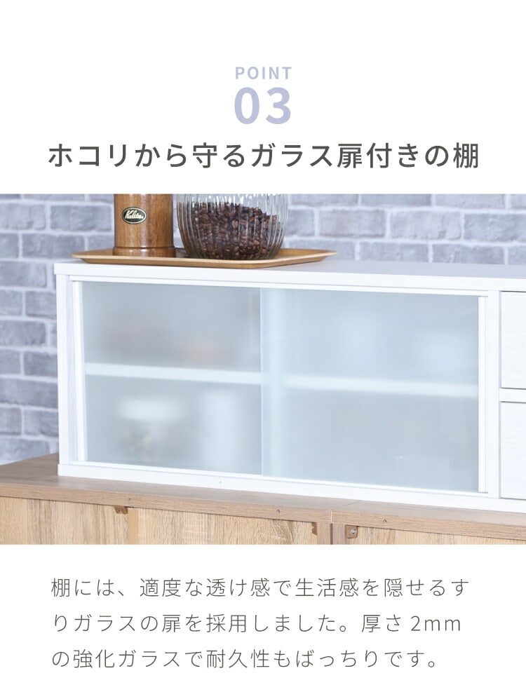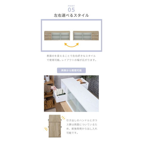 引き出しとガラス扉は両側から開けられるため、
