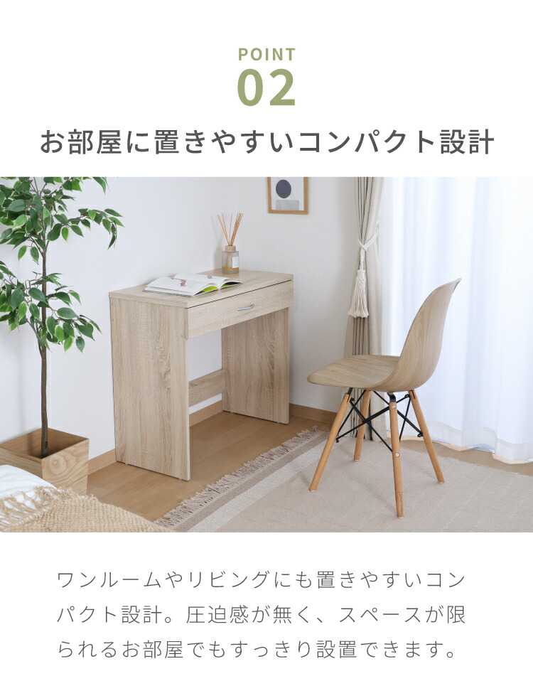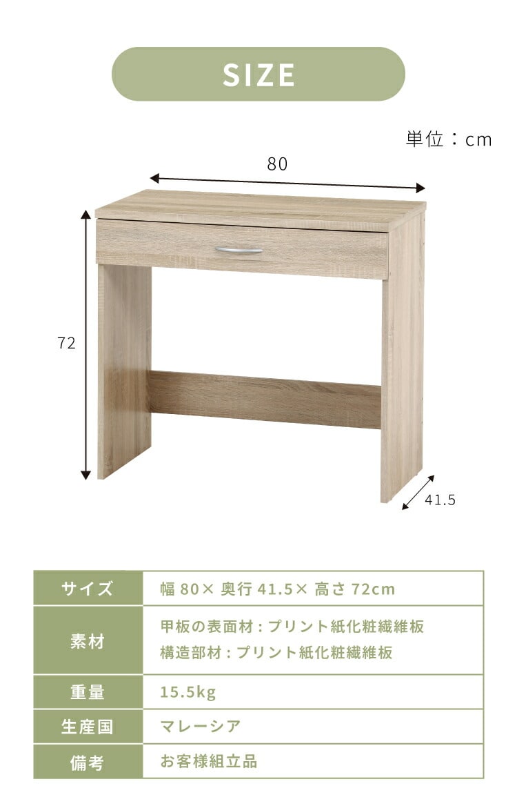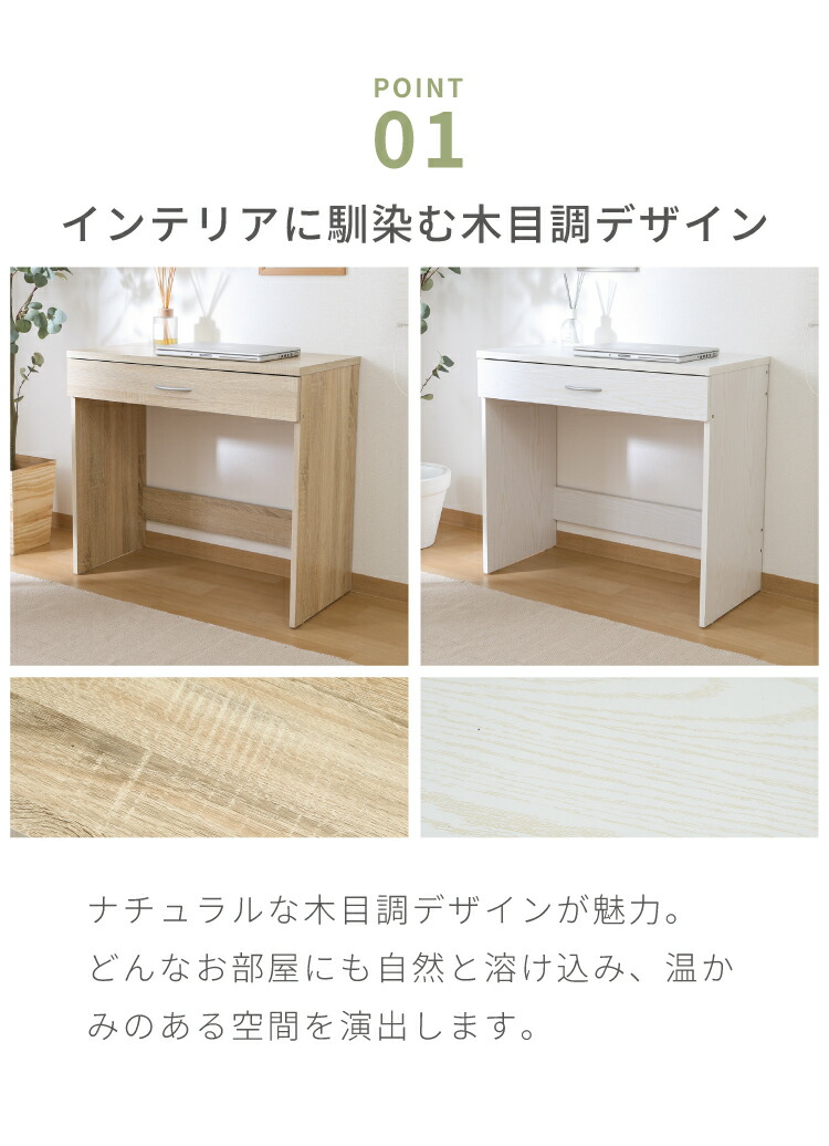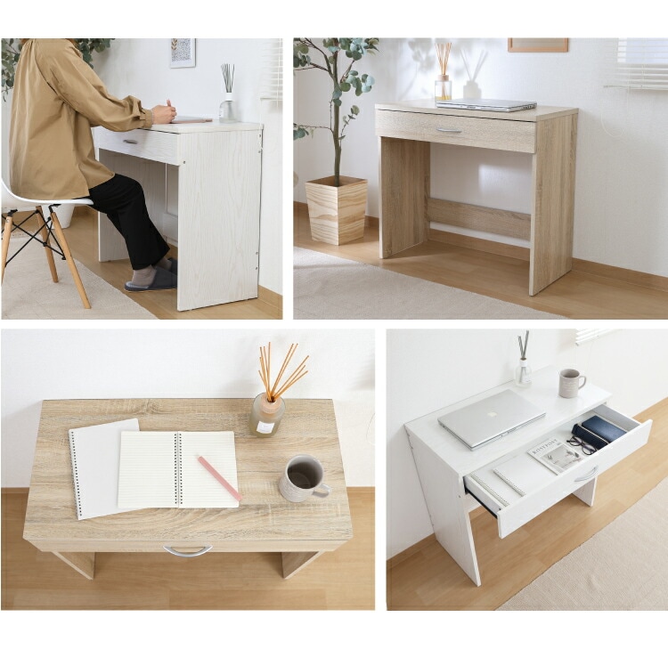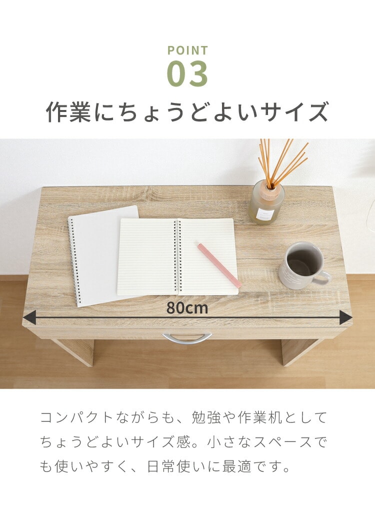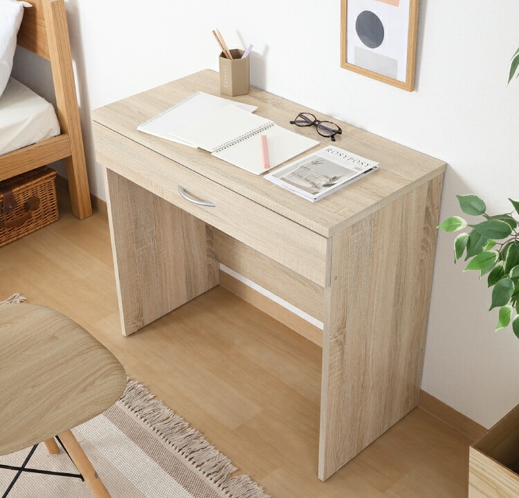 シンプルデスク 幅80cm 引き出し付き コンパクト 木目調 シンプル デスク 勉強机 作業机 おしゃれ ワンルーム 新生活 一人暮らし リモートワーク【送料無料】