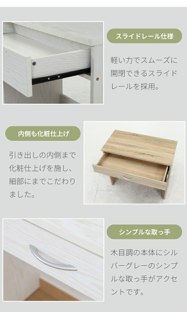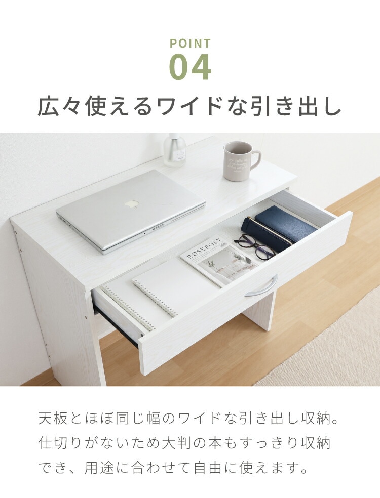 引き出しには、ノートや筆記用具、小物などが収納できます。