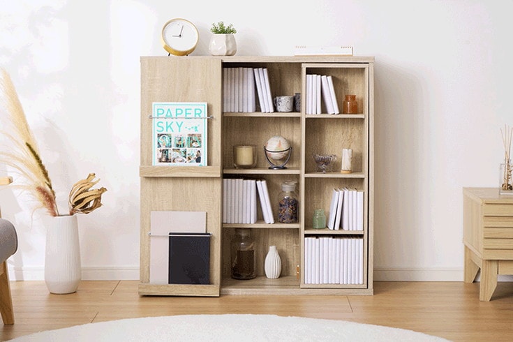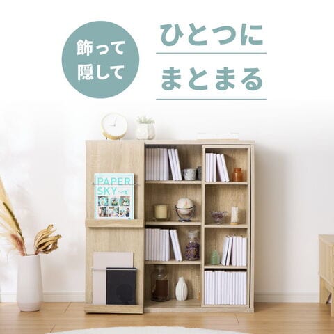 大容量のスライド書棚とオシャレなディスプレイラックが1つになりました。