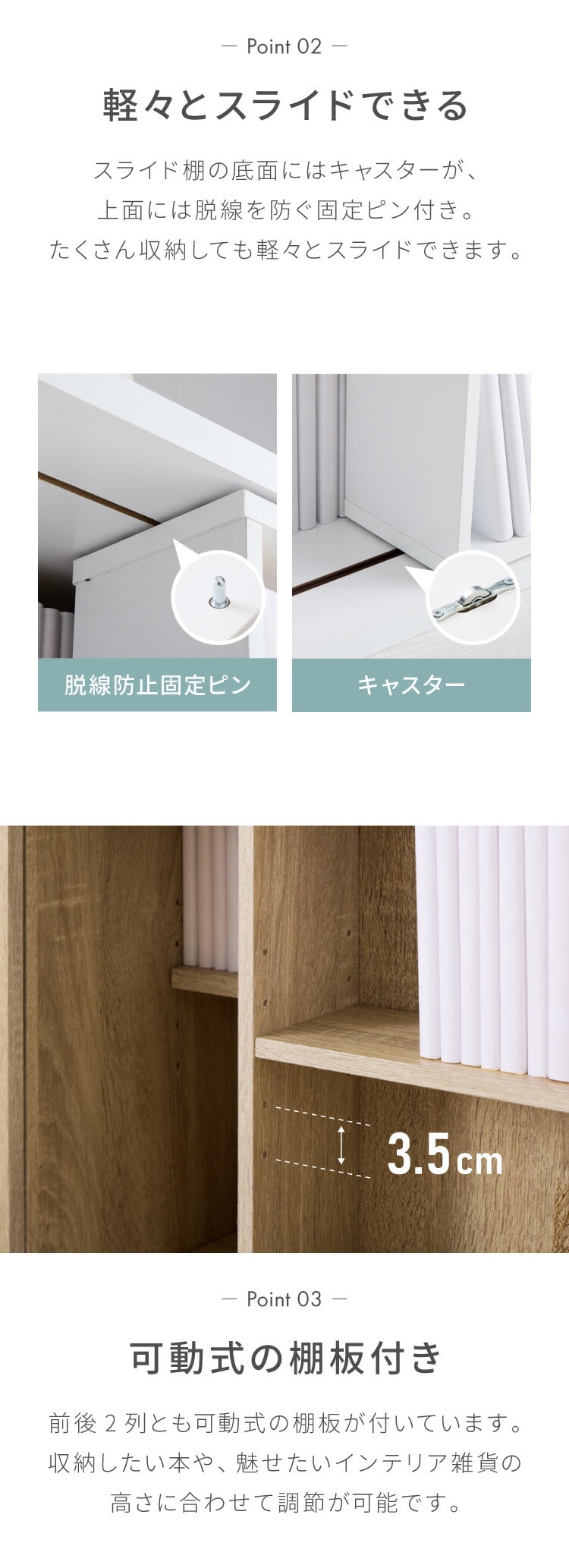 取り出しやすいスライド書棚は、たくさん収納してもスムーズに動きます。