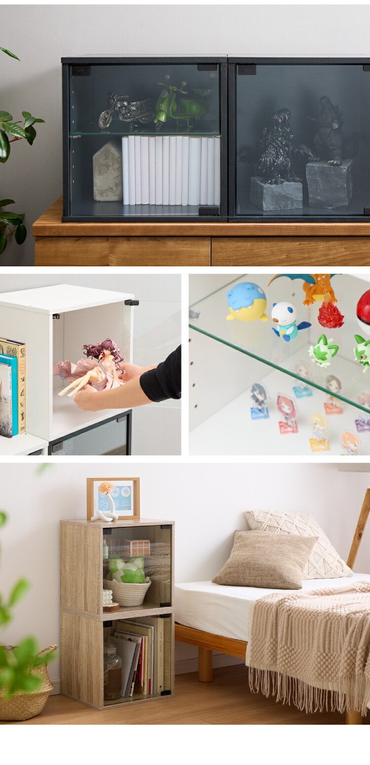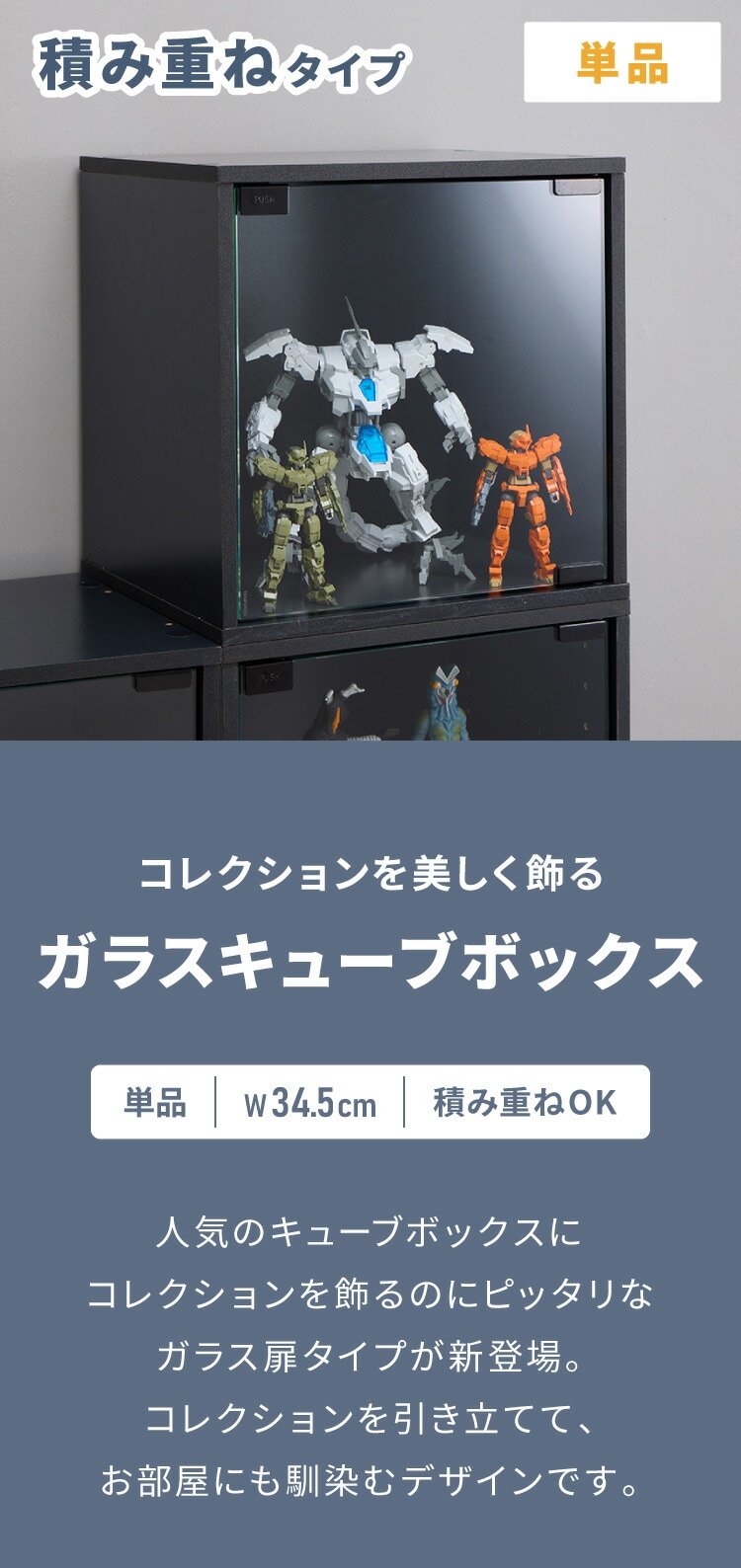 ガラスキューブボックス コレクションケース ガラス扉 横開き スタッキング可能 ディスプレイラック ショーケース 収納ボックス おしゃれ 間仕切り 本棚 推し活 趣味 コレクション【送料無料】