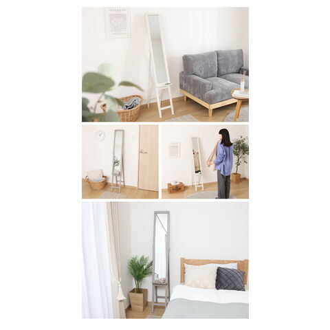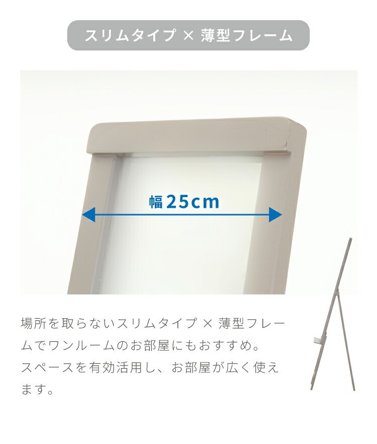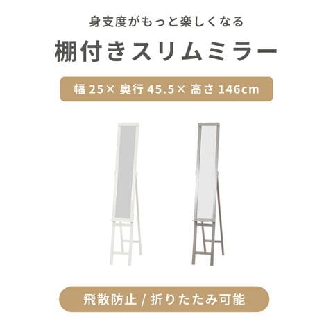 スリムミラー 棚付き 折りたたみ式 鏡 姿見 ミラー シンプル くすみカラー おしゃれ 可愛い ワンルーム 新生活 一人暮らし 鏡 北欧 スリム 飛沫防止【送料無料】