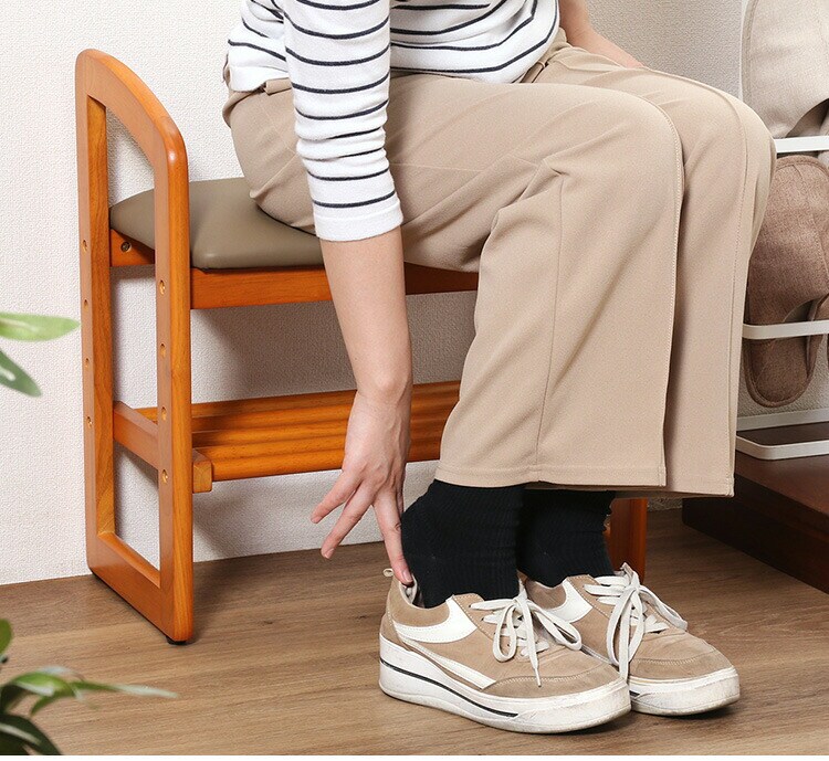 段差のない玄関などで靴の脱ぎ履きをサポートします。ブーツや紐靴などを履くときにも便利です。