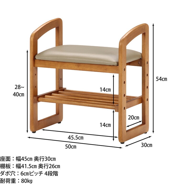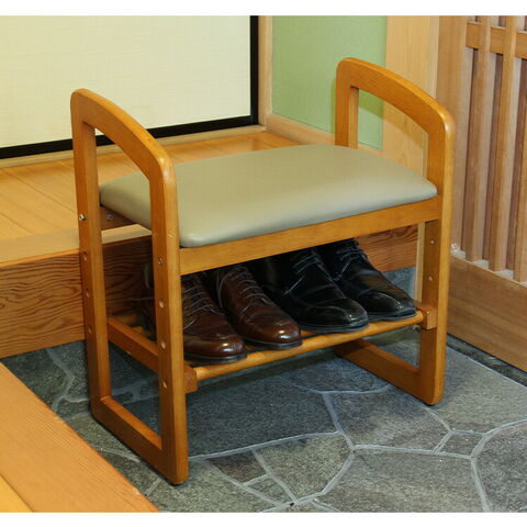 座面下には靴などが置ける棚板付き。