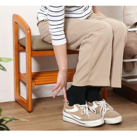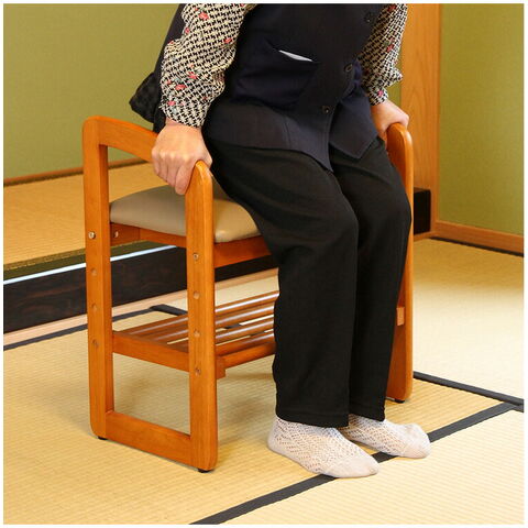 サポートチェア 手すり スツール 高さ調節 棚付き アジャスター付き 腰掛け 椅子 チェア お手入れ簡単 汚れに強い 収納 玄関 和室 シューズラック 木製 ベンチ いす 3段階 昇降 肘掛け付き 立ち座り【送料無料】のレビュー
