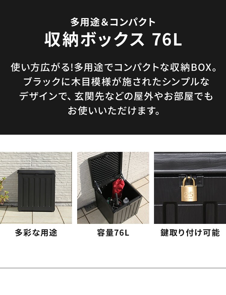 収納ボックス 76L 収納庫 取っ手付き 玄関 屋外 シンプルデザイン 木目模様 工具不要 組立簡単 施錠できる ポリタンク収納 ゴミ箱 物置【送料無料】